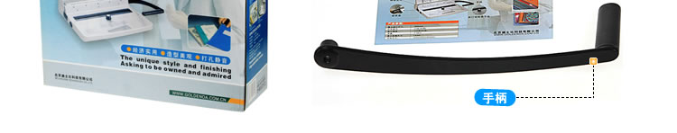 1、安裝手柄:把隨箱配制的手柄套入裝訂機(jī)右側(cè)方軸位置上(注意:手柄工作角度),用鎖緊螺釘擰緊。