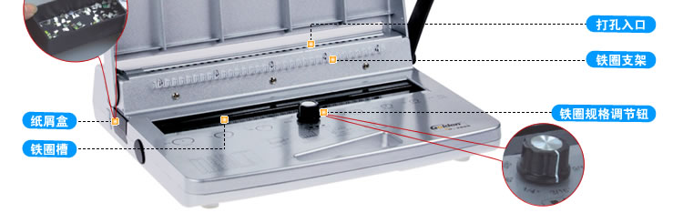 人性化設(shè)計,用于方便固定鐵圈,便于將已好打孔的文本穿入鐵圈內(nèi)。