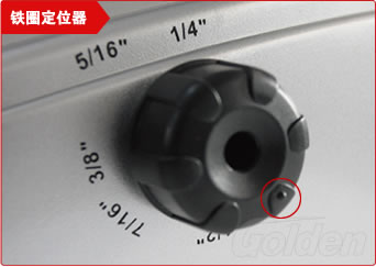 用于調(diào)節(jié)鐵圈尺寸,根據(jù)您所使用的鐵圈尺寸,將定位器調(diào)節(jié)至對(duì)應(yīng)的尺寸。