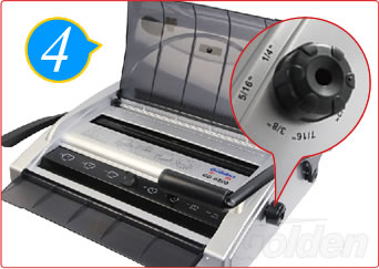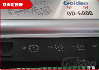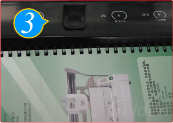如您不了解所用的鐵圈尺寸,可將鐵圈與對(duì)照表進(jìn)行對(duì)應(yīng),將鐵圈定位器調(diào)至合適的大小,不至于裝訂的文件出現(xiàn)壓過或未合攏狀況。