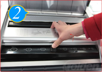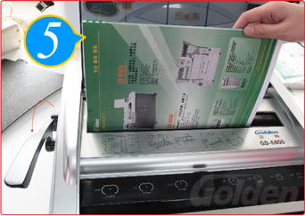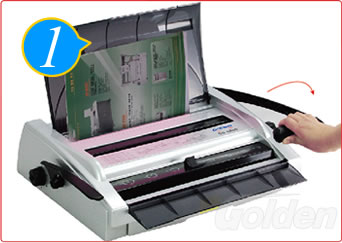 將文件整齊放入打孔槽內(nèi),下壓打孔手柄,進(jìn)行打孔。