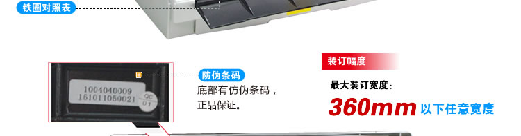 幅面寬達(dá)360mm,可裝A3文件及360mm以內(nèi)的各種臺(tái)歷和掛歷。可抽刀, 垂直打孔設(shè)計(jì),使裝訂更快捷,使用更方便。刀口鋒利,經(jīng)過2萬次打孔測試,切紙整齊。裁刀全部采用優(yōu)質(zhì)材料和先進(jìn)技術(shù),鋒利耐用,令切紙整齊,打孔不歪斜、不起毛邊。