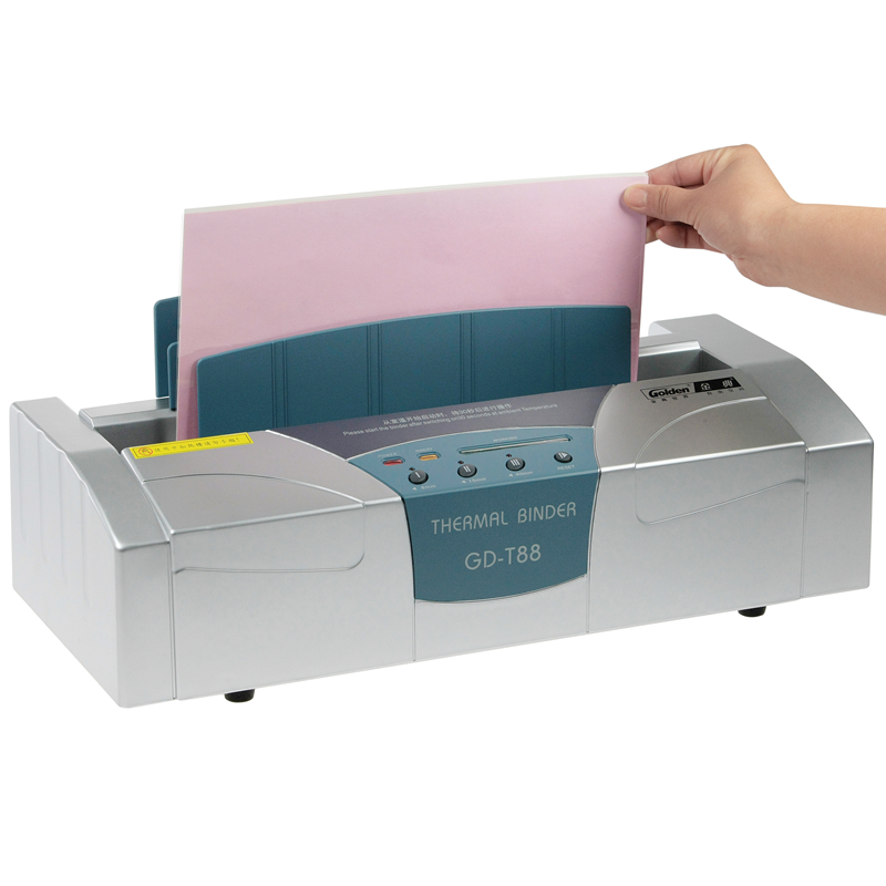 熱熔裝訂機(jī)不需要打孔,書釘或者膠圈,利用樹脂熱熔膠粘合原理,在幾十秒內(nèi)就可以將散頁裝訂成牢固美觀的書本。