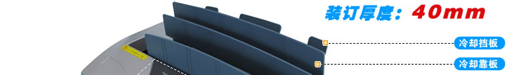 加熱時間結(jié)束時五只WORKING燈同時閃爍,WORKING燈熄滅后將裝訂本取出。插入機(jī)背的冷卻槽中,須使封脊平靠在冷卻槽上約三分后,裝訂完成。