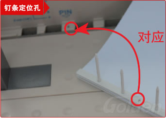 將釘條上的小孔套在機(jī)器上的釘條定位孔上。