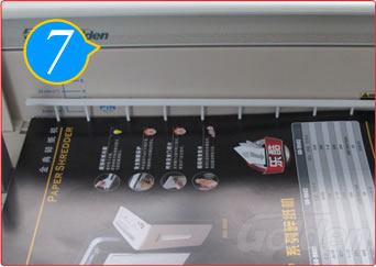 ①將紙張整理整齊,緊靠定位塊,將紙張平行送入機(jī)器內(nèi),頂?shù)轿粸橹埂?/p>