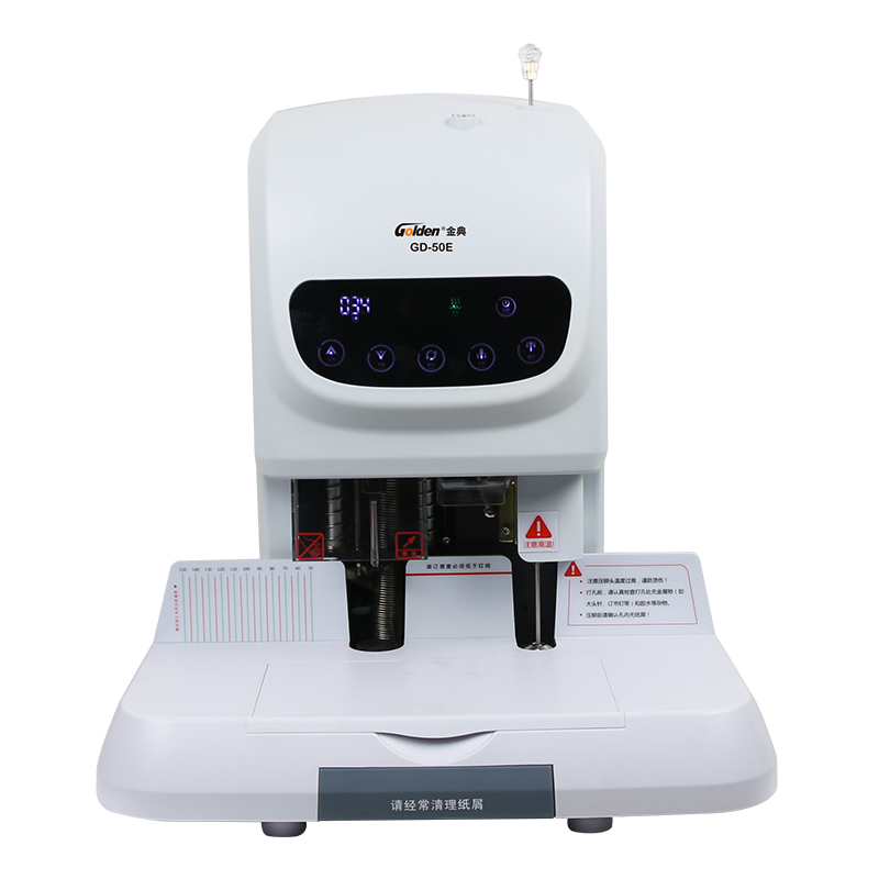 530mm375mm480mm打孔、裝訂厚度(mm) 50(即500頁(yè))以下任意厚度 鉆孔并裝訂速度(秒) ≤38秒 打孔方式 自動(dòng)打孔 裝訂方式 自動(dòng)裝訂 適用鉆刀尺寸 Ф6×50mm 適用鉚管尺寸 Ф5.2 定位導(dǎo)向針工具盒鉆刀紙屑盒觸摸彩屏工作臺(tái)定位針