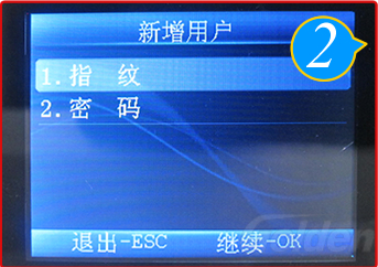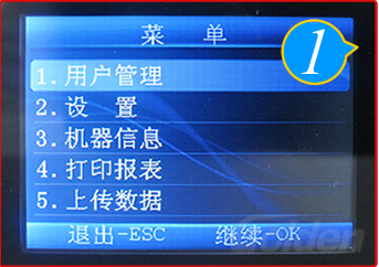 第一步:點MENU進入菜單進入用戶管理(點OK鍵確認)。