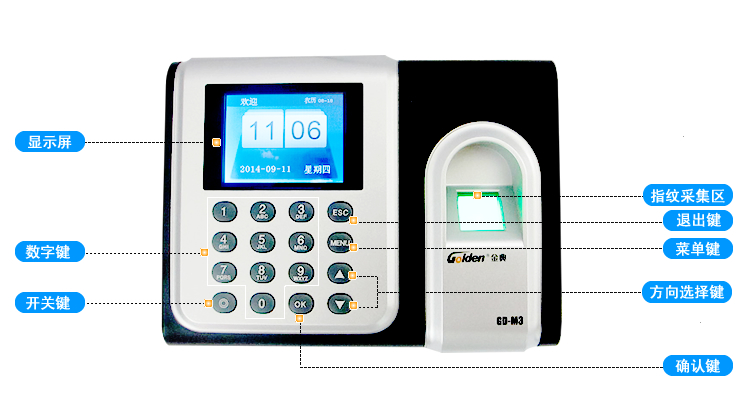 傻瓜式的操作流程,三步驟就可以使用,僅需用U盤即可導出詳細的EXCEL報表。采用了高標準的雙核運算芯片,在滿載指紋比對速度達到0.8秒,員工考勤不排隊。采用高硬高強度水晶指紋頭,防刮耐磨更防水,配以高級芯片還能自主指紋自動更新。