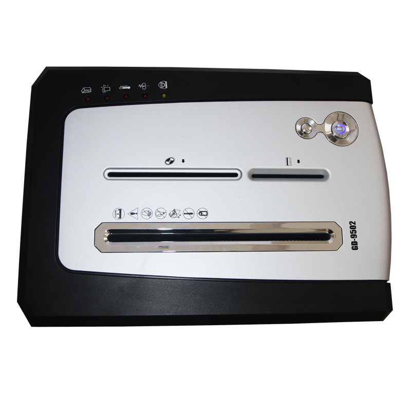 把待碎紙放入進(jìn)紙口,機(jī)器自動(dòng)啟動(dòng)碎紙。(若為光盤(pán)或者卡放入對(duì)應(yīng)光盤(pán)、卡入口即可。)