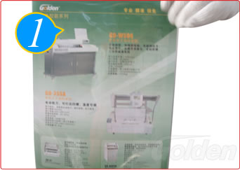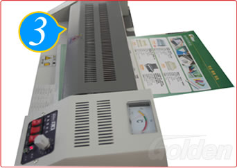 待機(jī)器預(yù)熱完畢,將裝好的文件平行推入進(jìn)口處。