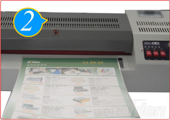 插上電源,根據(jù)膜的厚度調(diào)好溫度,將要塑封的文件放入專業(yè)塑封膜中。